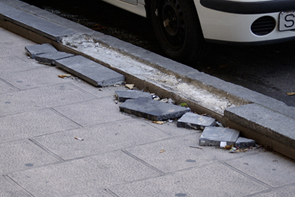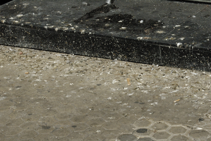 Excrementos de paloma en una acera muy transitada a un lateral de la