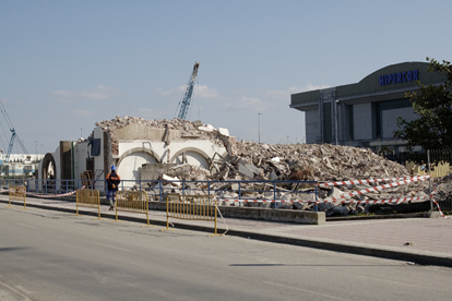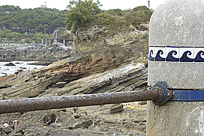![]() Estado en que quedó el templo después del paso de las excavadoras. Barandilla en la Playa del Camello. Podían haberla pintado que lleva