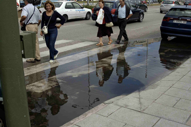 Esto no tiene desperdicio Lugar: Paso de peatones frente al muelle de ferrys. Estando atracado en el citado muelle el portaaviones de la Armada Española Príncipe de Asturias y justo en el momento que el presidente de Cantabria recibía honores en el portaaviones, esta situación se daba en el paso de peatones que da acceso al citado muelle. ¿Nadie dio una vuelta por los alrededores para cuidar el aspecto de los accesos? |